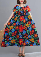 Questo abito lungo in cotone con stampa floreale è un’esplosione di colore che unisce comfort e allegria.
