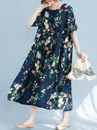 • Stampa floreale vivace: Fiori multicolore su sfondo blu navy per un effetto naturale e romantico