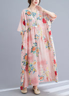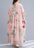 Questo abito lungo rosa con stampa floreale e linea ampia è l’ideale per chi desidera un look fresco, femminile e senza costrizioni.