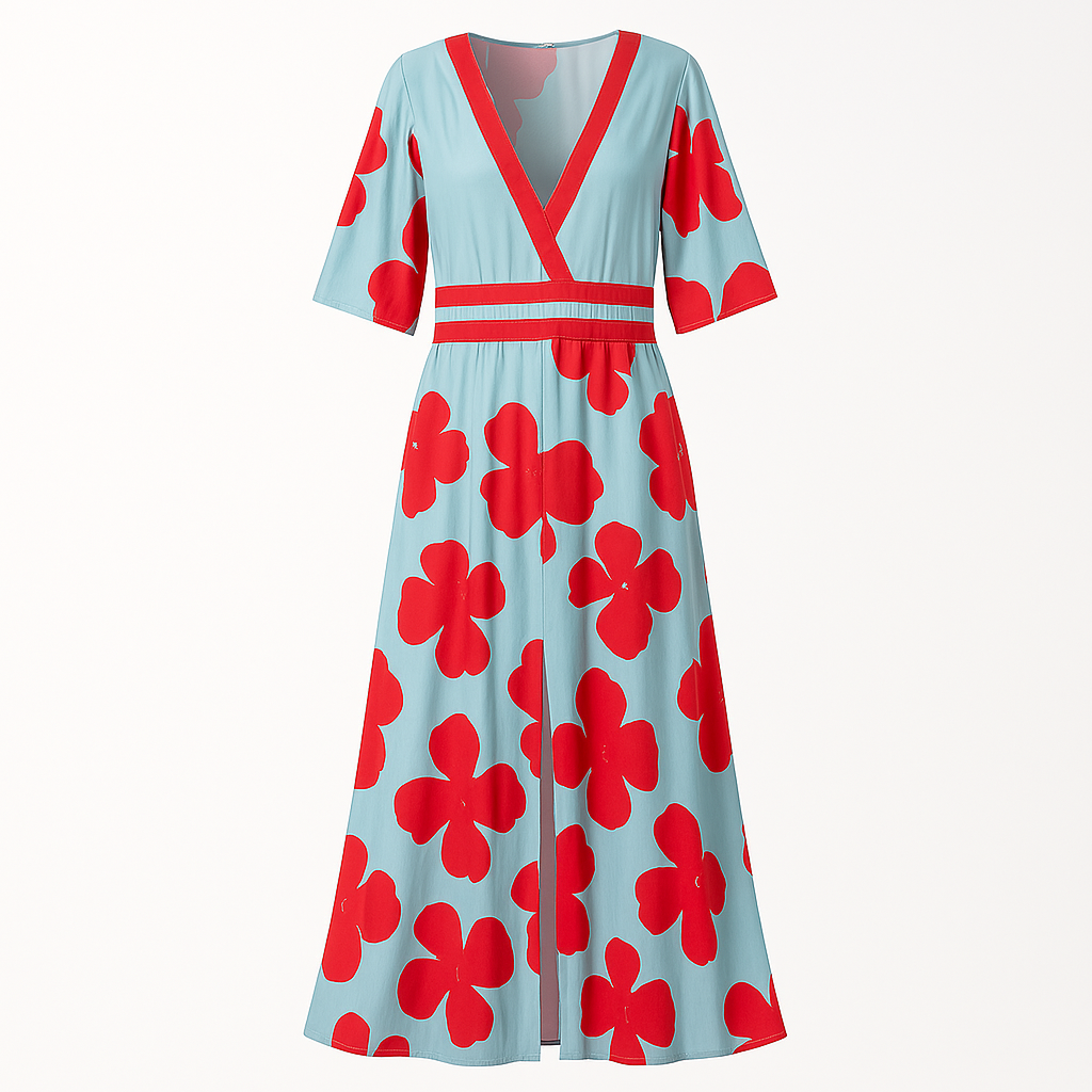 Abito Lungo Floreale | Scollo a V | Elegante & Femminile