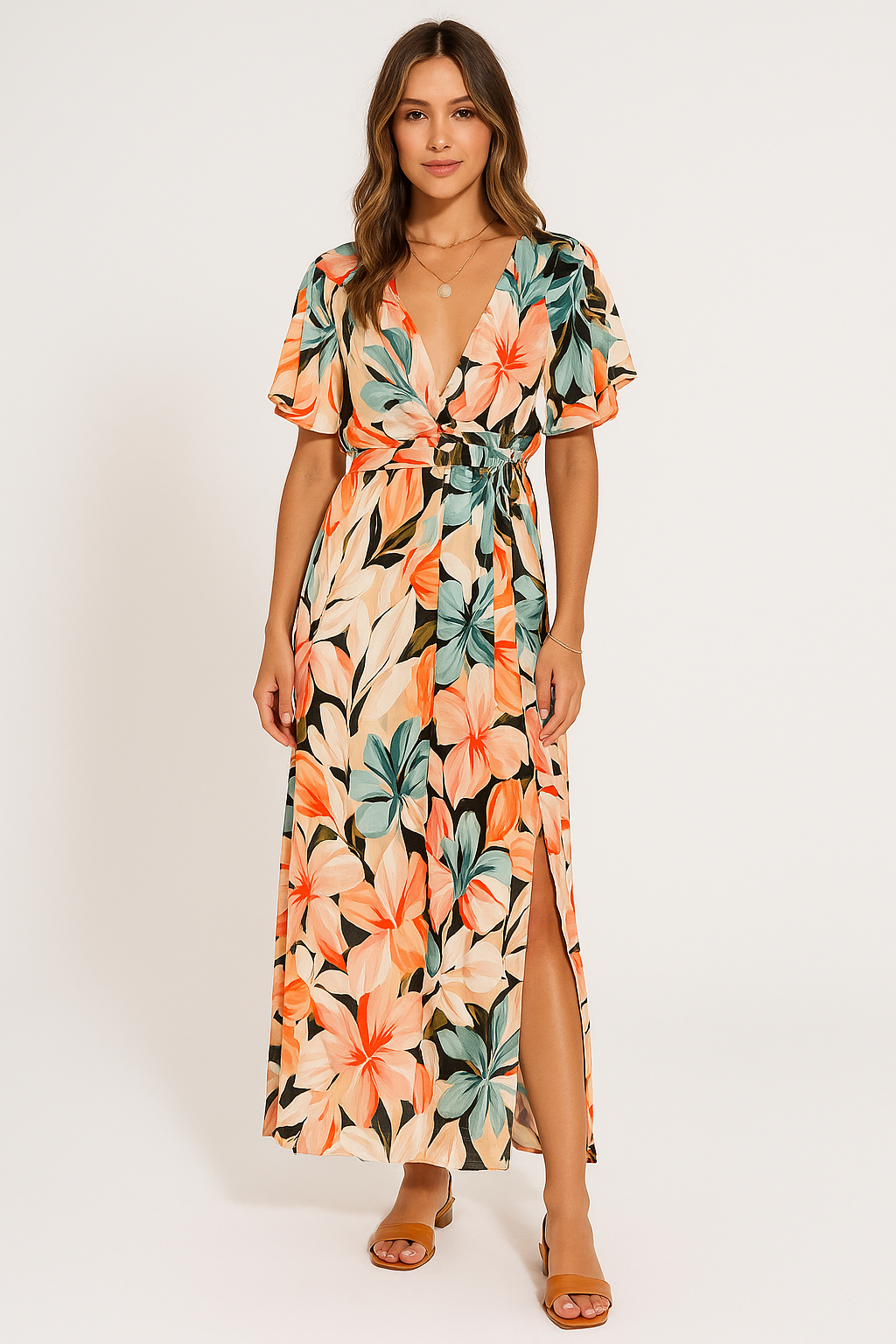 Abito Lungo Floreale | Stampa Tropicale | Fluido ed Elegante