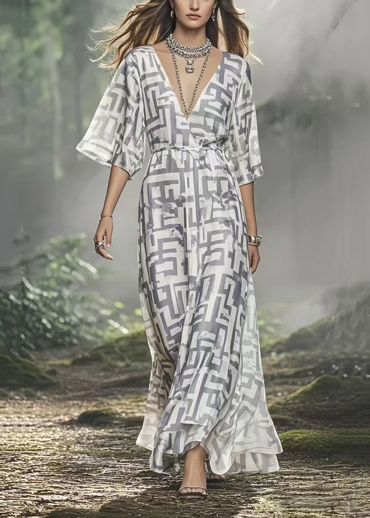 La scollatura profonda e le maniche ampie aggiungono movimento e fascino ad ogni passo.