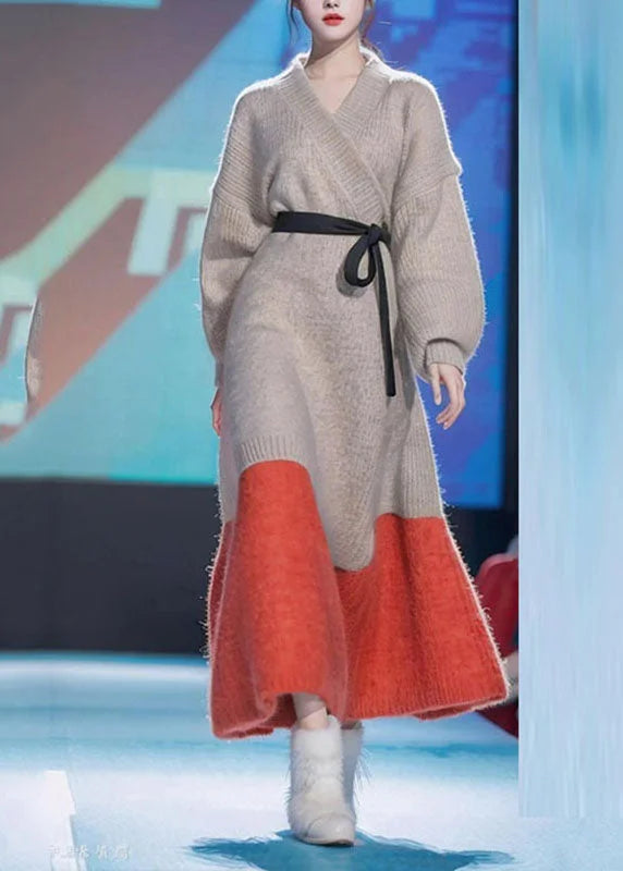 Questo maxi abito in maglia bicolore è la scelta perfetta per affrontare le giornate fredde con eleganza.