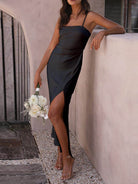 Abito Lungo in Raso con Spacco | Scollo Dritto & Spalline Sottili | Minimalismo Glam