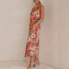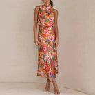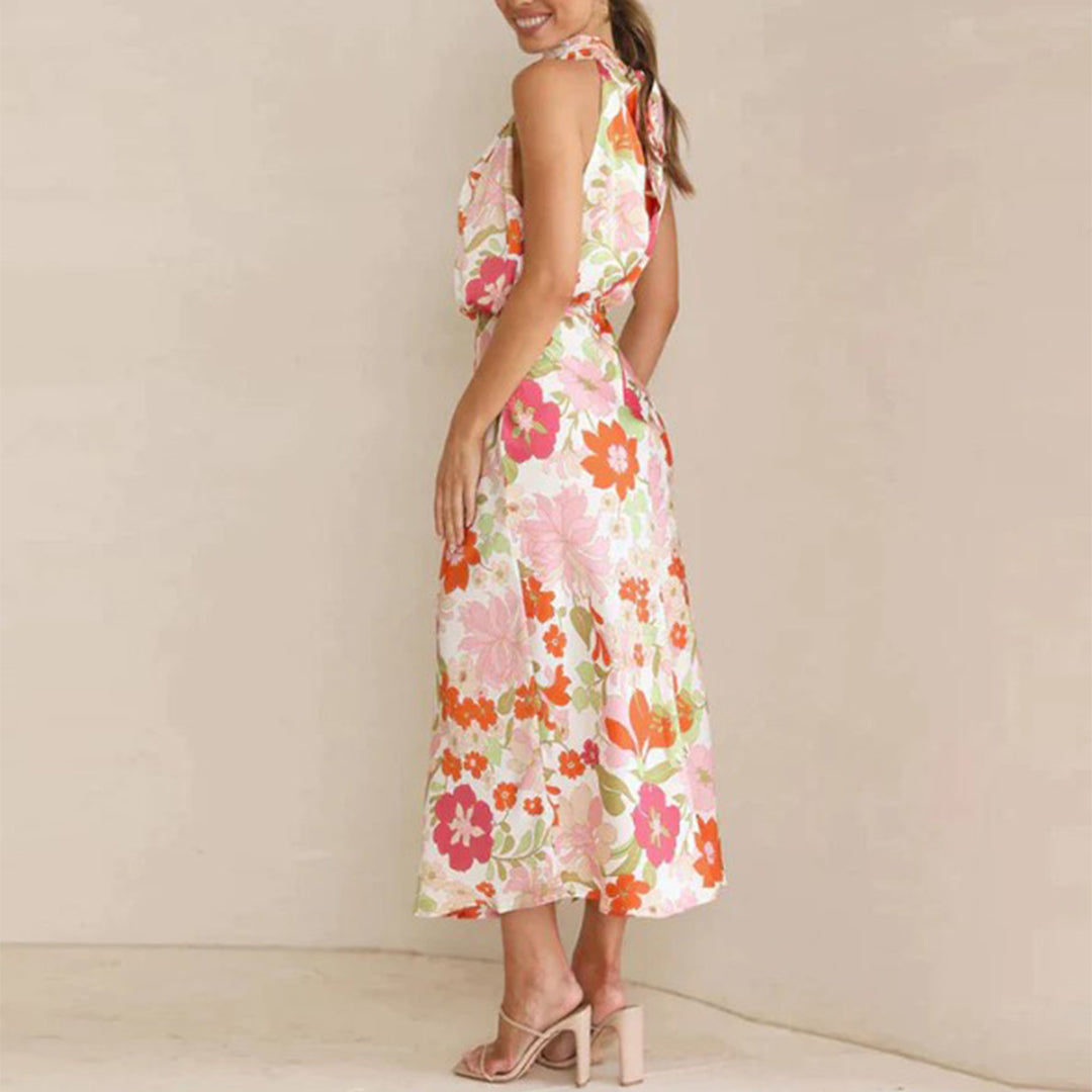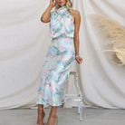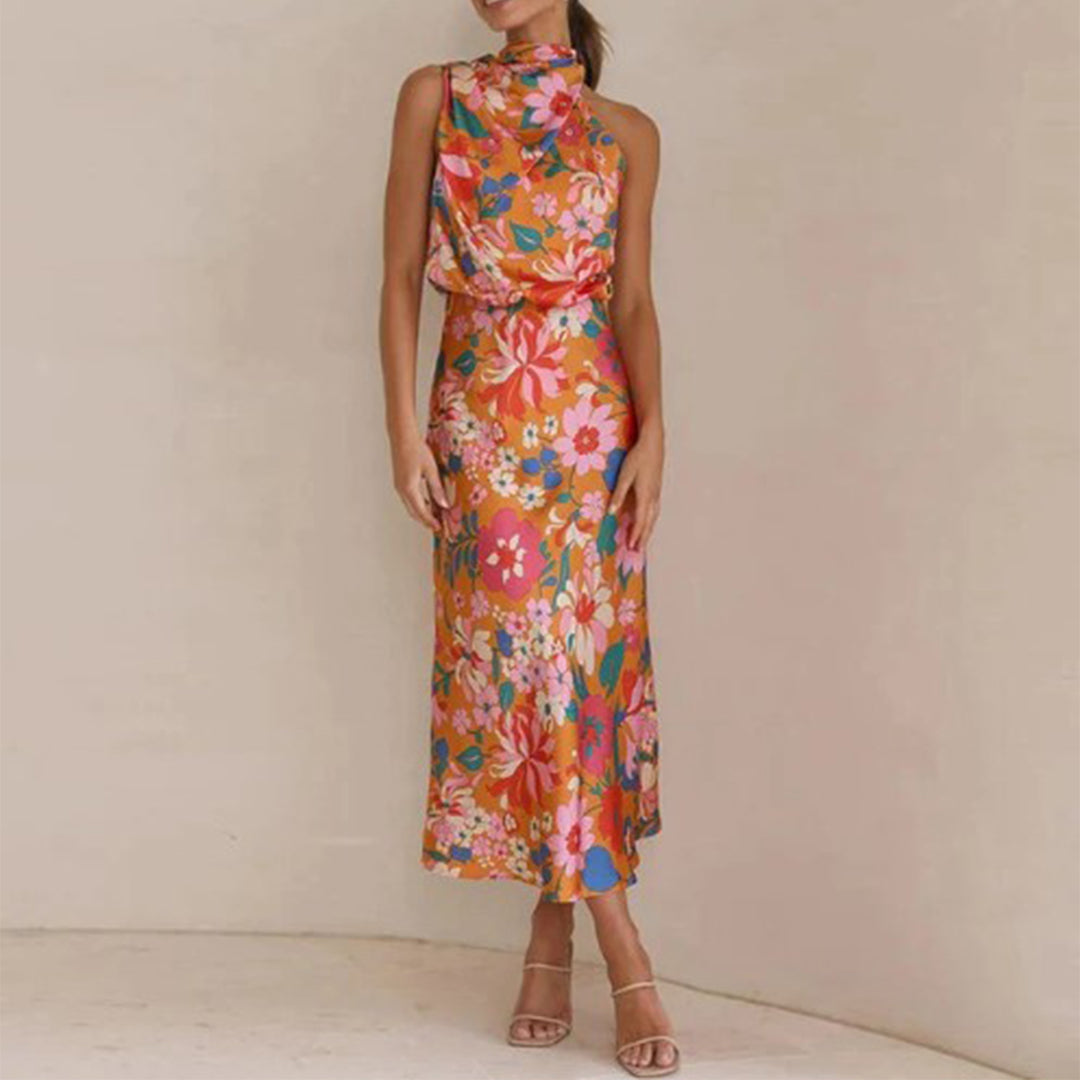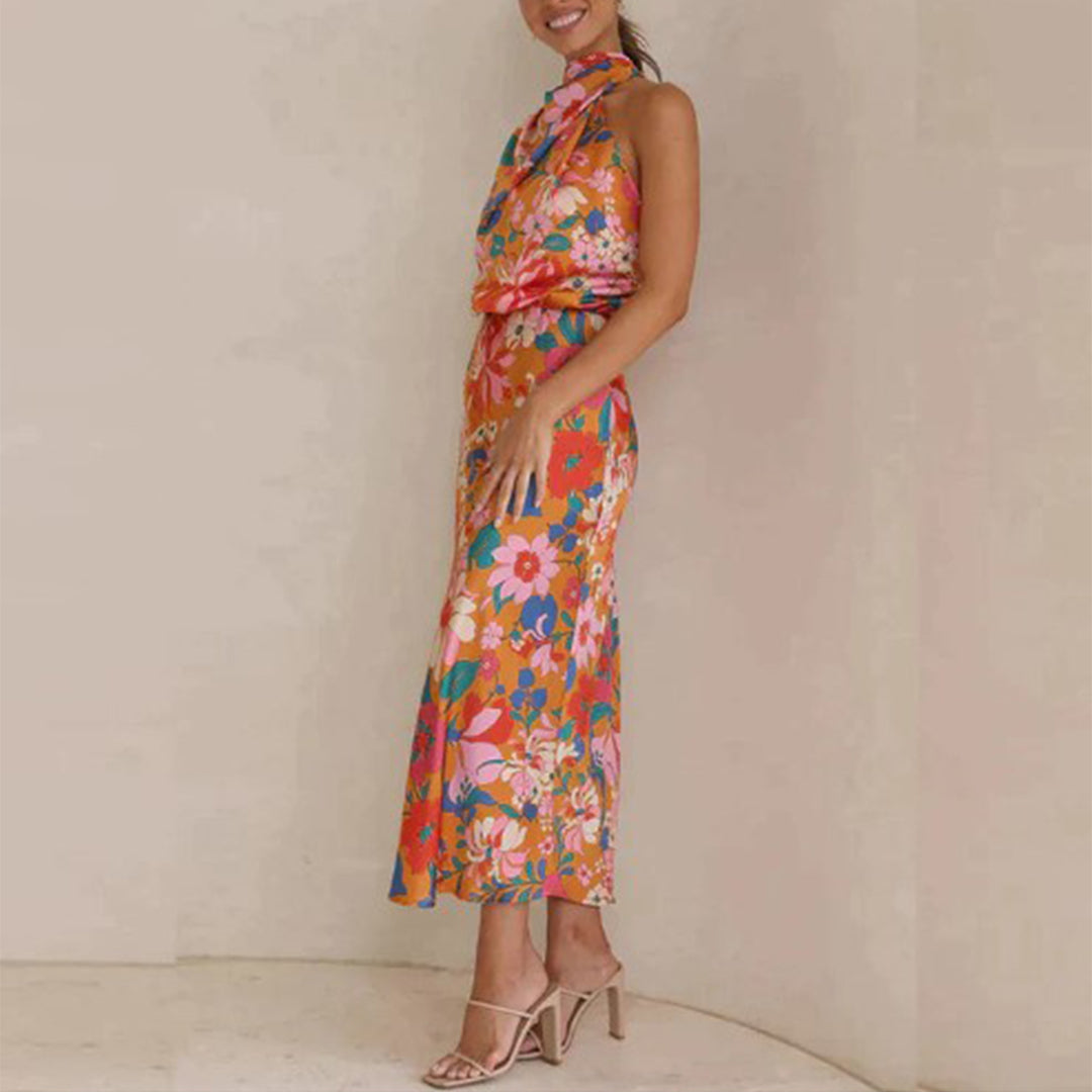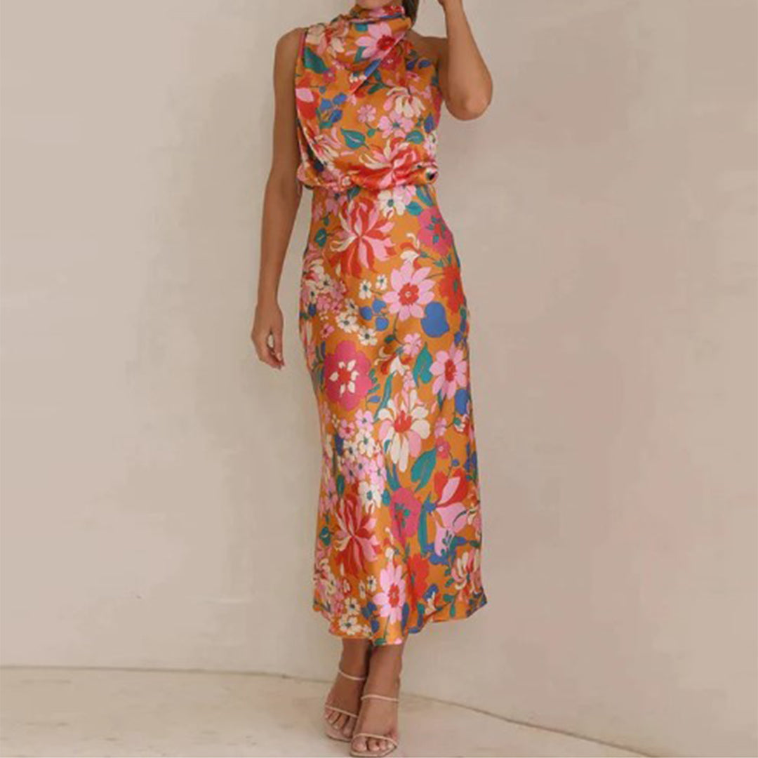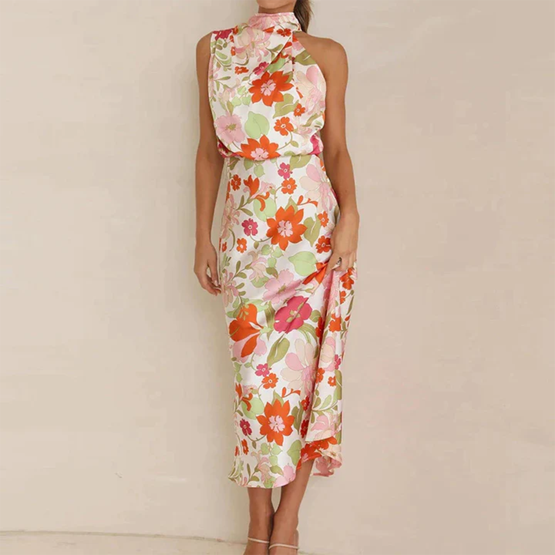 Abito Lungo in Raso Floreale | Elegante & Fluido | Perfetto per Eventi Estivi