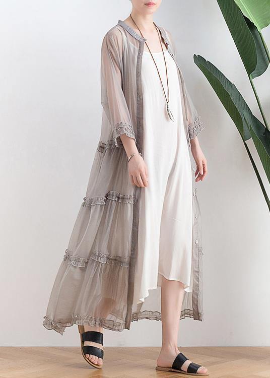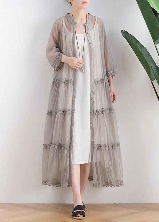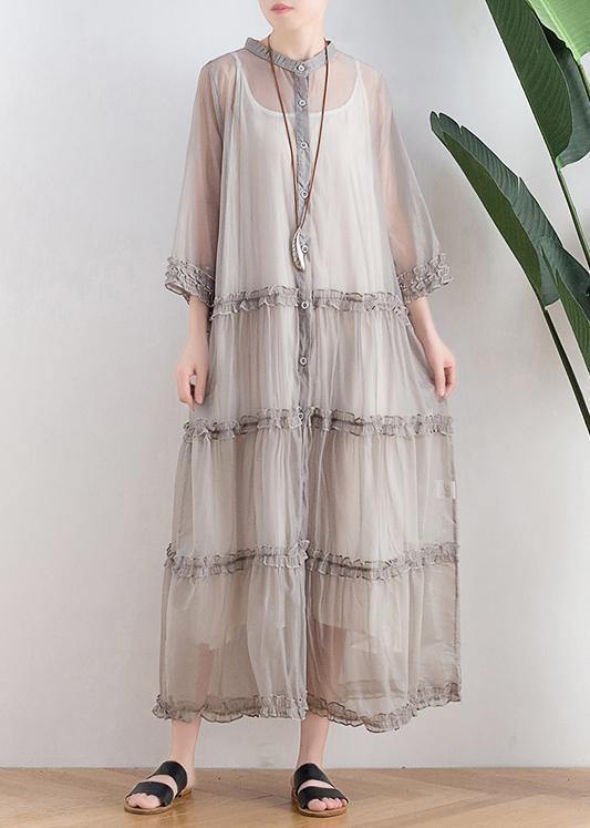 Abito Lungo in Tulle con Bottoni