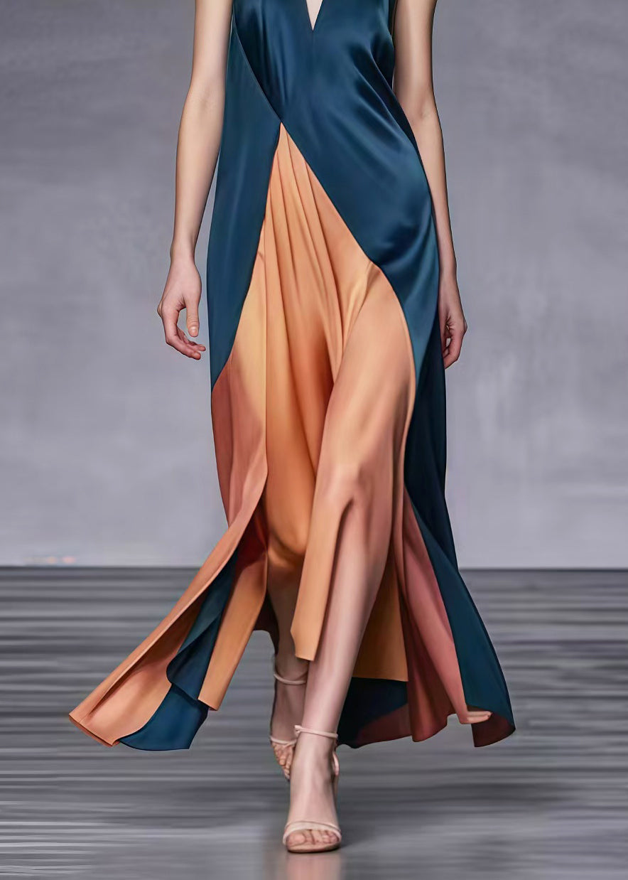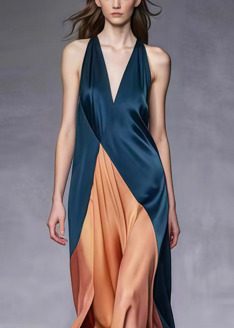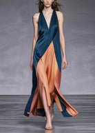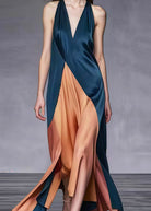 Abito lungo incrociato in raso bicolor