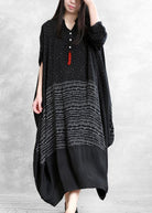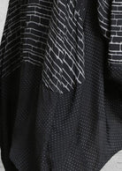 Questo abito lungo oversize nero con mix di fantasie grafiche è la scelta ideale per chi ama distinguersi con eleganza informale.