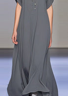 Questo abito lungo in tessuto leggero unisce praticità e stile con la sua linea ampia e rilassata.