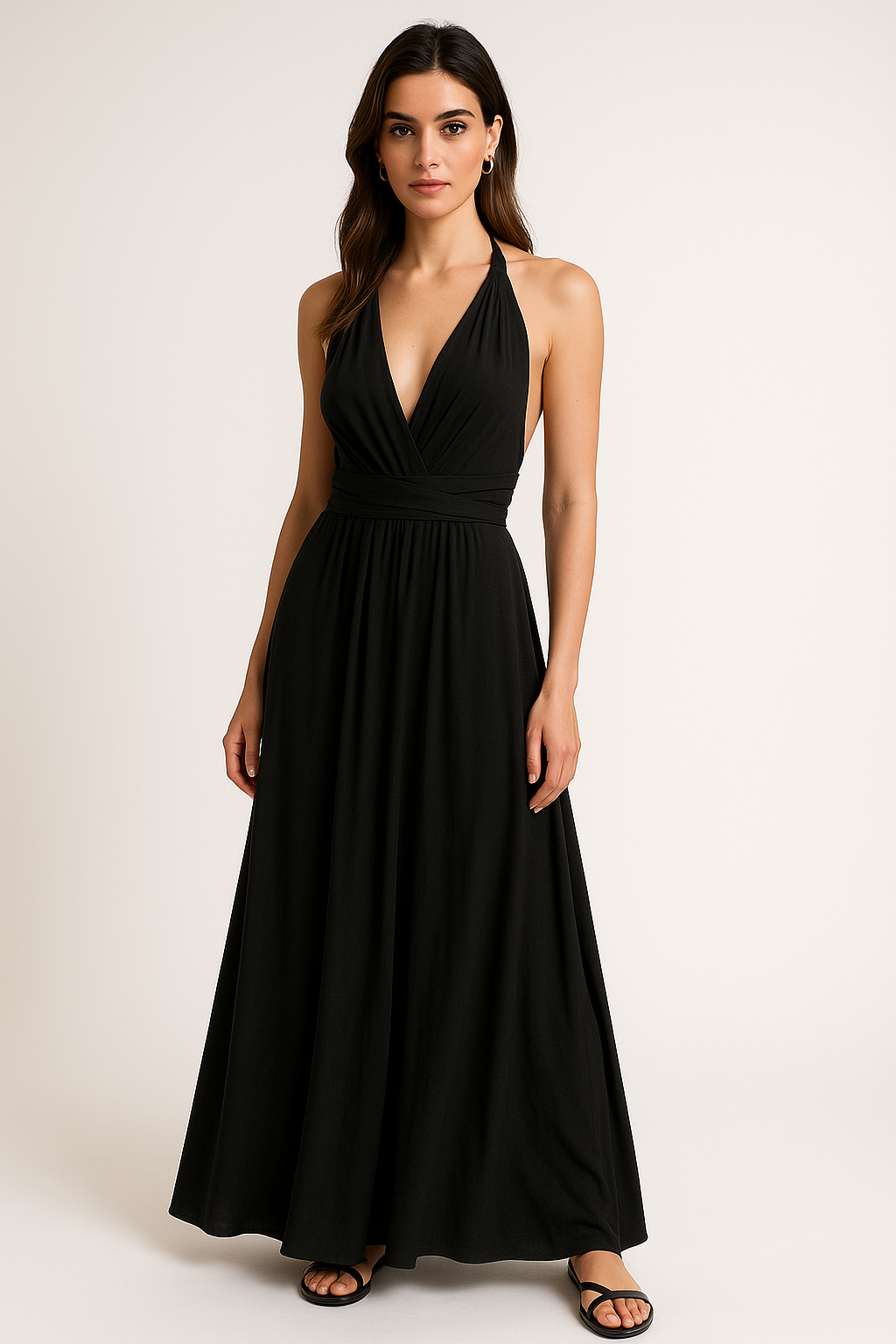 Abito Lungo Versatile | Schiena Scoperta | Stile Multi-Nodo