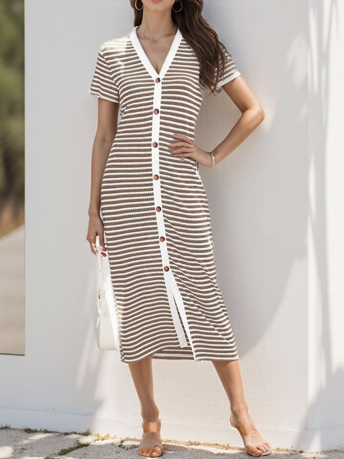 Abito Maglia a Righe | Scollo a V | Fresco e Versatile