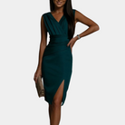 Questo abito midi aderente con scollo a V e spacco laterale è perfetto per esaltare le tue curve con classe.