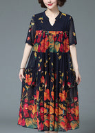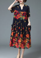 Questo abito midi in chiffon con stampa floreale accesa su fondo scuro unisce leggerezza e charme in perfetto stile elegante-casual.