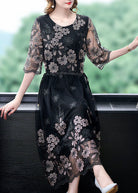 Questo vestito midi in tulle nero ricamato con fiori è la scelta ideale per un look sofisticato con un tocco romantico.