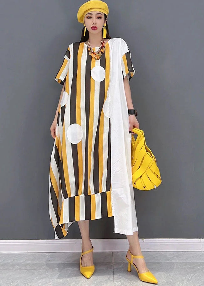 Questo abito midi oversize con righe e pois è perfetto per chi ama un look artistico e fuori dagli schemi.