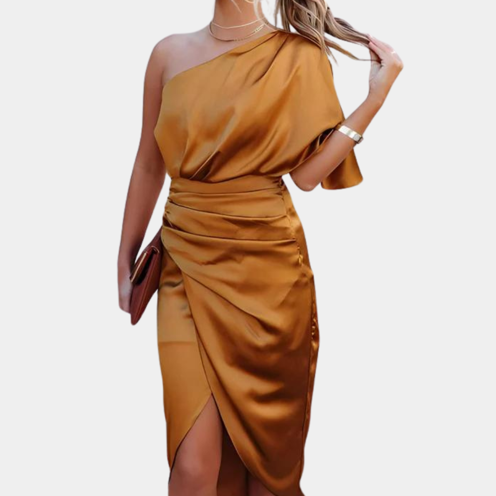 Abito Monospalla in Raso | Stile Elegante con Drappeggio | Perfetto per Serate e Occasioni Speciali