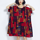 Questo vestito oversize con stampa geometrica vivace è perfetto per chi vuole sentirsi libera nei movimenti senza rinunciare a un look d'impatto.