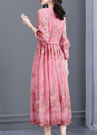 Questo abito midi rosa con ricami floreali è la scelta perfetta per un look raffinato e romantico.