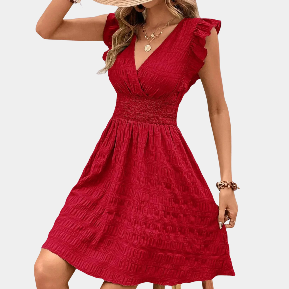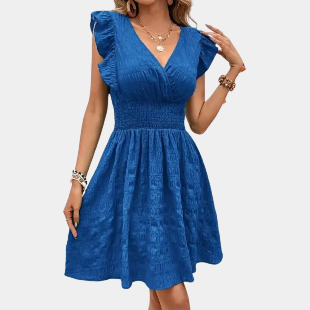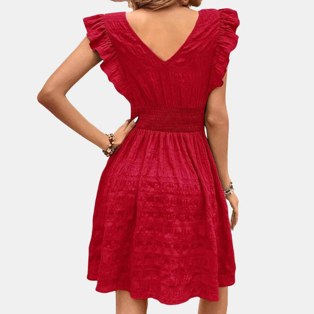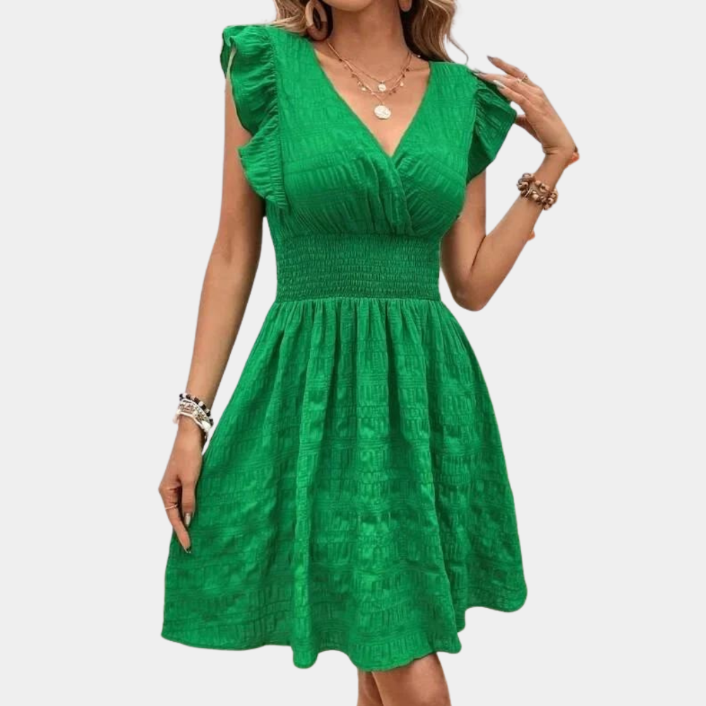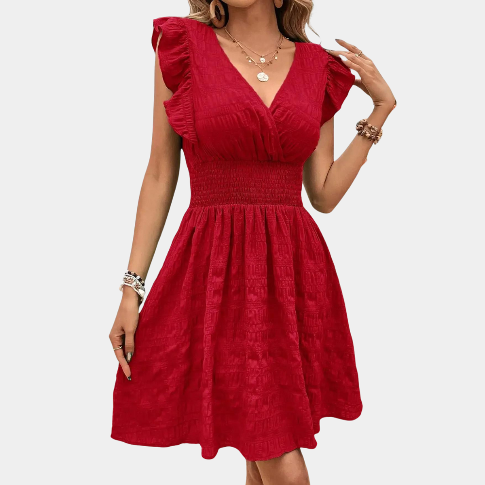 - Vestibilità Flatterante: Vita arricciata e gonna svasata per un tocco elegante.