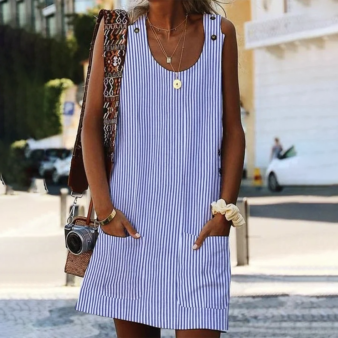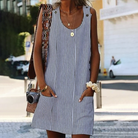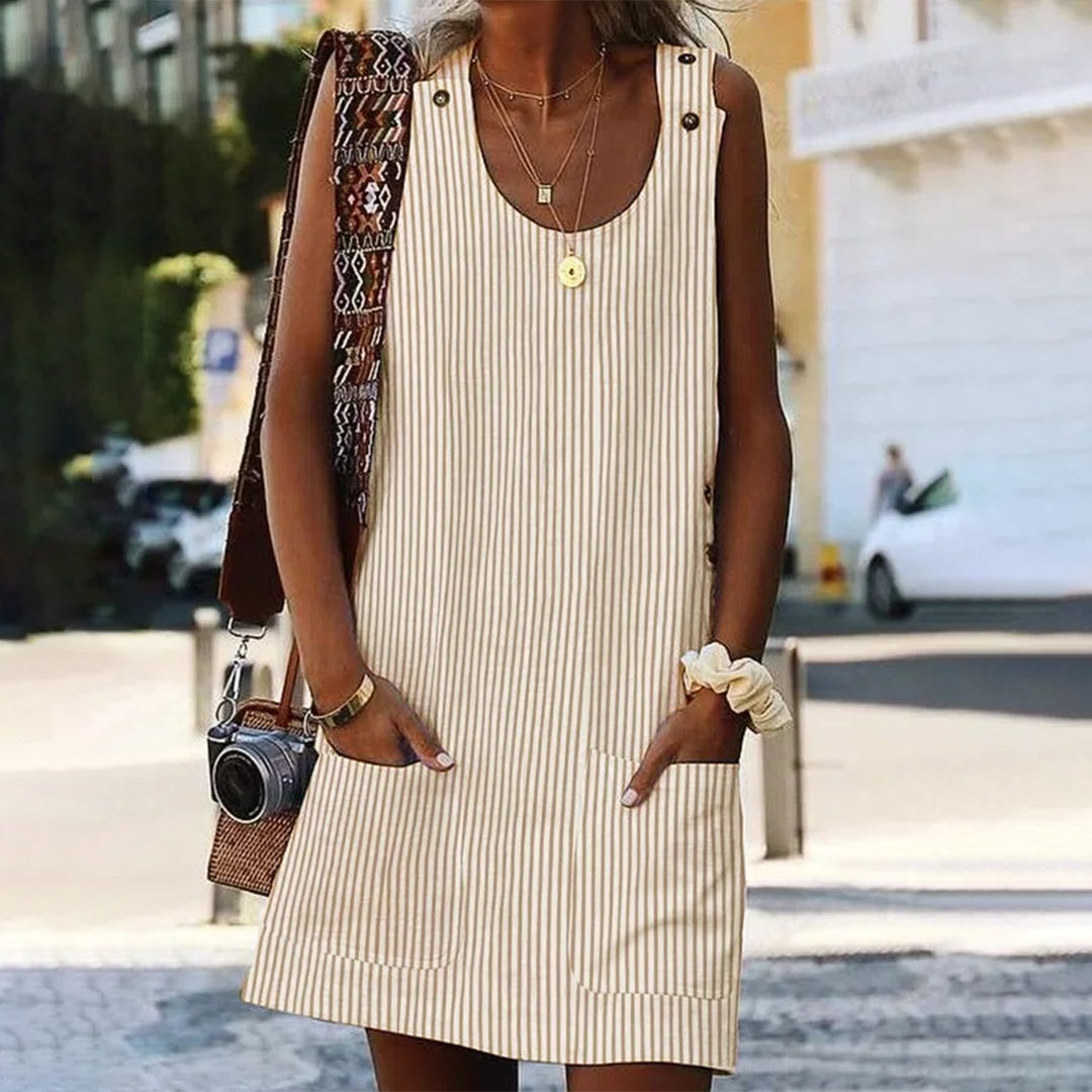 Abito Smanicato in Lino | Motivo a Righe | Fresco & Casual