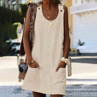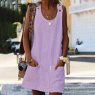 Questo abito smanicato in lino è perfetto per un look casual e fresco. Il design a righe aggiunge un tocco di stile classico, mentre la vestibilità ampia e il tessuto traspirante lo rendono ideale per affrontare il caldo con eleganza. Perfetto per passeggiate in città, gite estive o look da vacanza.