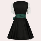 Questo abito Dirndl in stile bavarese presenta un corsetto con lacci regolabili, dettagli floreali ricamati e una gonna svasata con grembiule abbinato. Il design classico esalta la silhouette, rendendolo ideale per feste e celebrazioni folkloristiche.