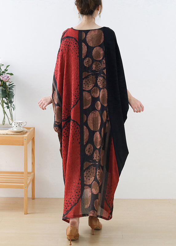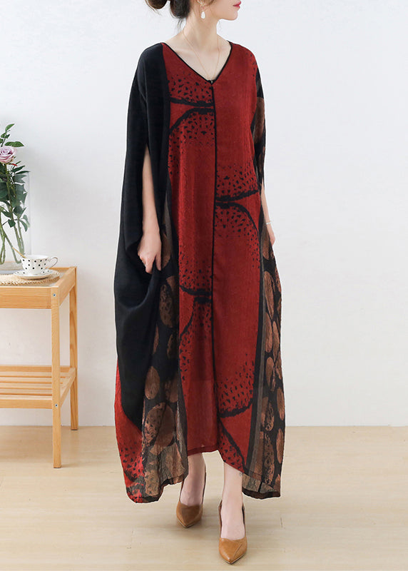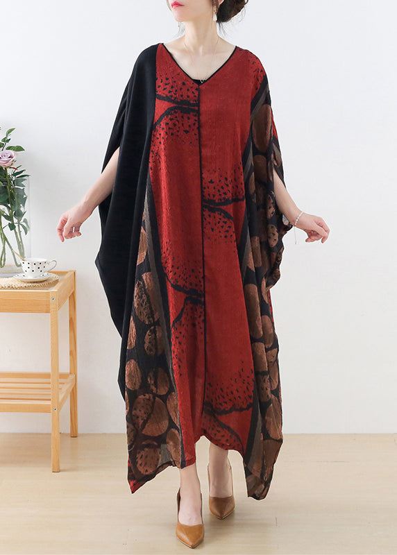 Il suo design fluido, con stampa artistica nei toni caldi del rosso e marrone, aggiunge un tocco scenografico ed elegante.