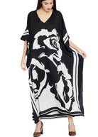 Questo caftano lungo con stampa maxi floreale in bianco e nero è la scelta ideale per chi ama uno stile sofisticato e fluido.