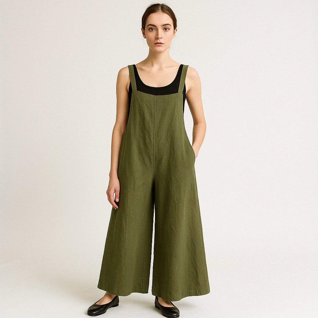 Salopette in Lino | Verde Oliva | Leggera e Traspirante