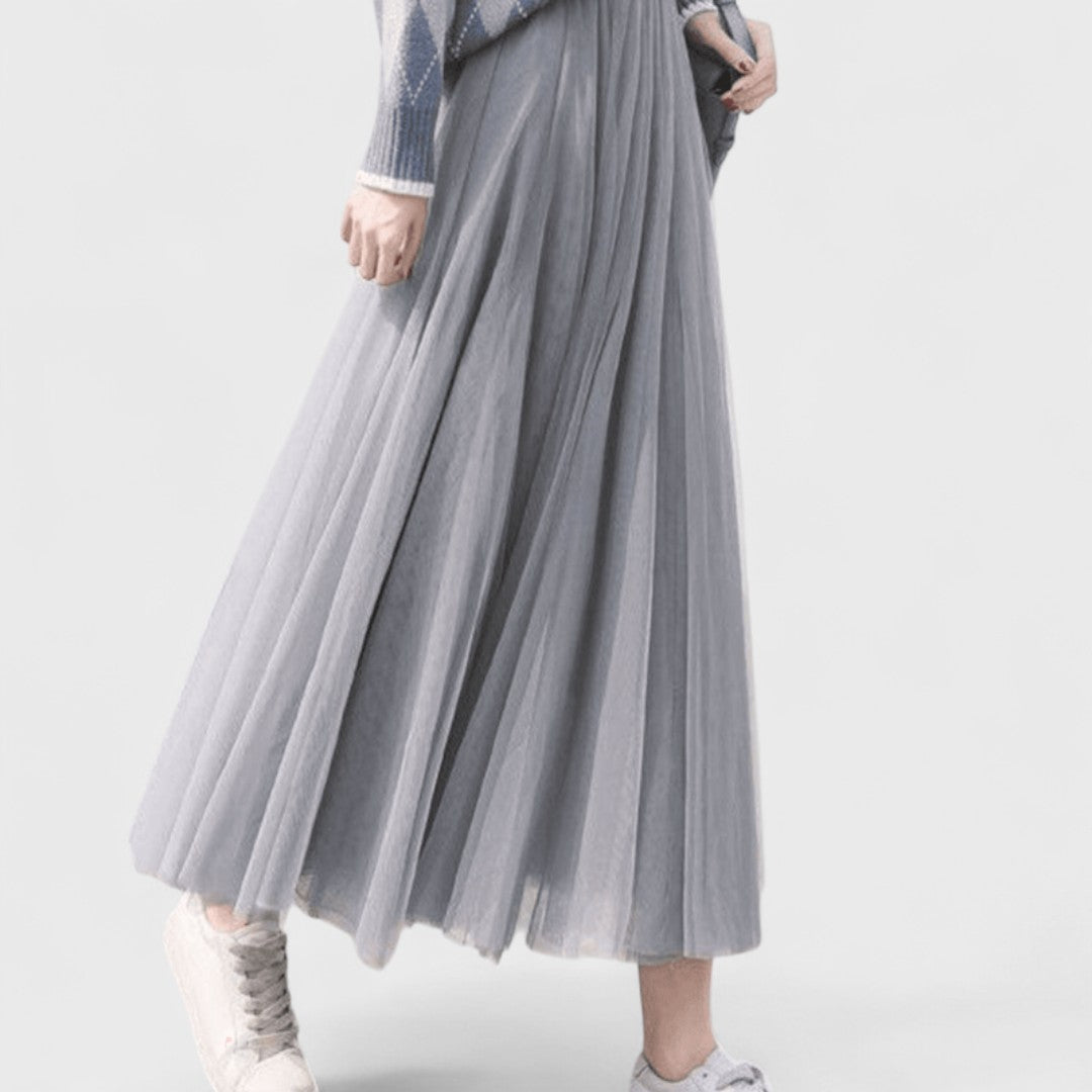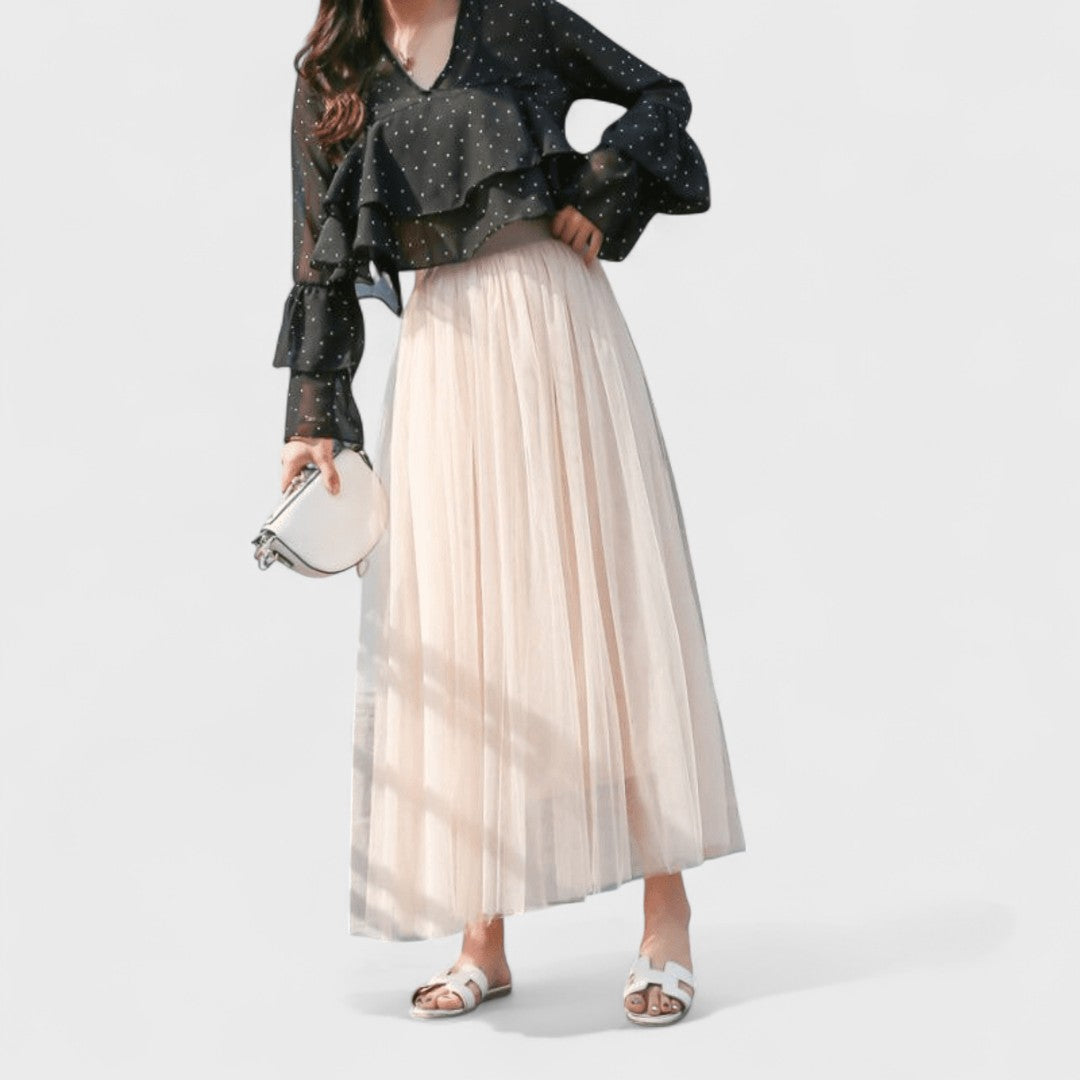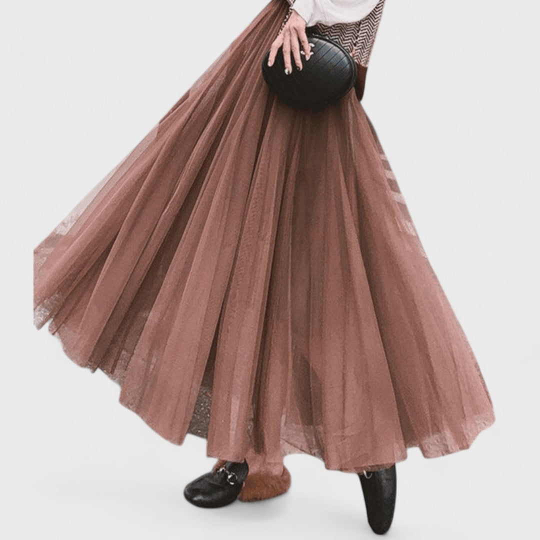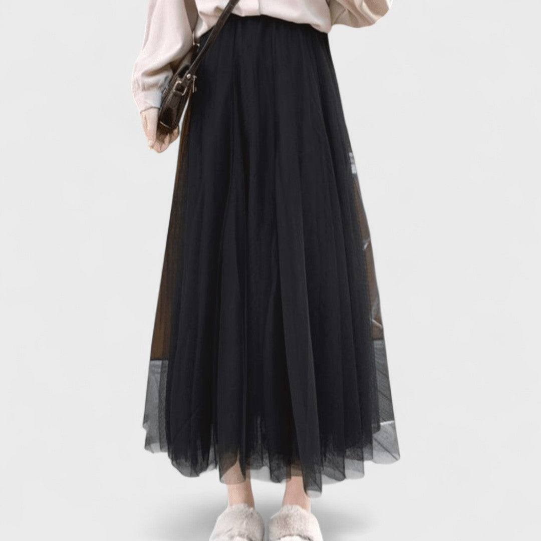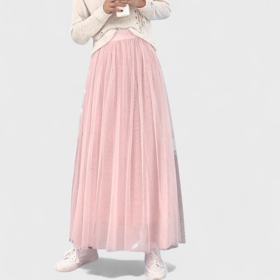 Questa gonna lunga in tulle crea un effetto etereo e voluminoso, perfetto per distinguersi con stile.