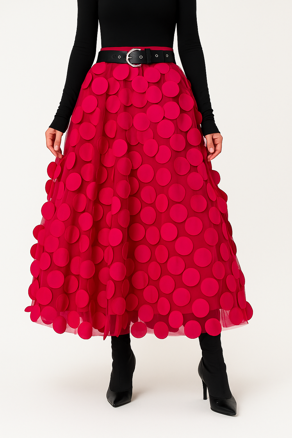Gonna Midi A-Line | Elegante | Effetto 3D Pois