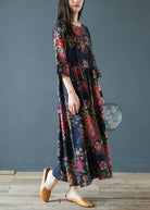 Maxi abito floreale in stile boho – Blu navy con stampa rosa