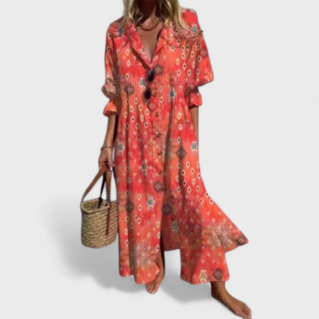 Il taglio fluido e le maniche a 3/4 rendono questo vestito perfetto per le giornate calde e le serate informali.
