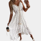 Il tessuto leggero e i dettagli in pizzo lo rendono perfetto per matrimoni in spiaggia, feste estive o look boho-chic.