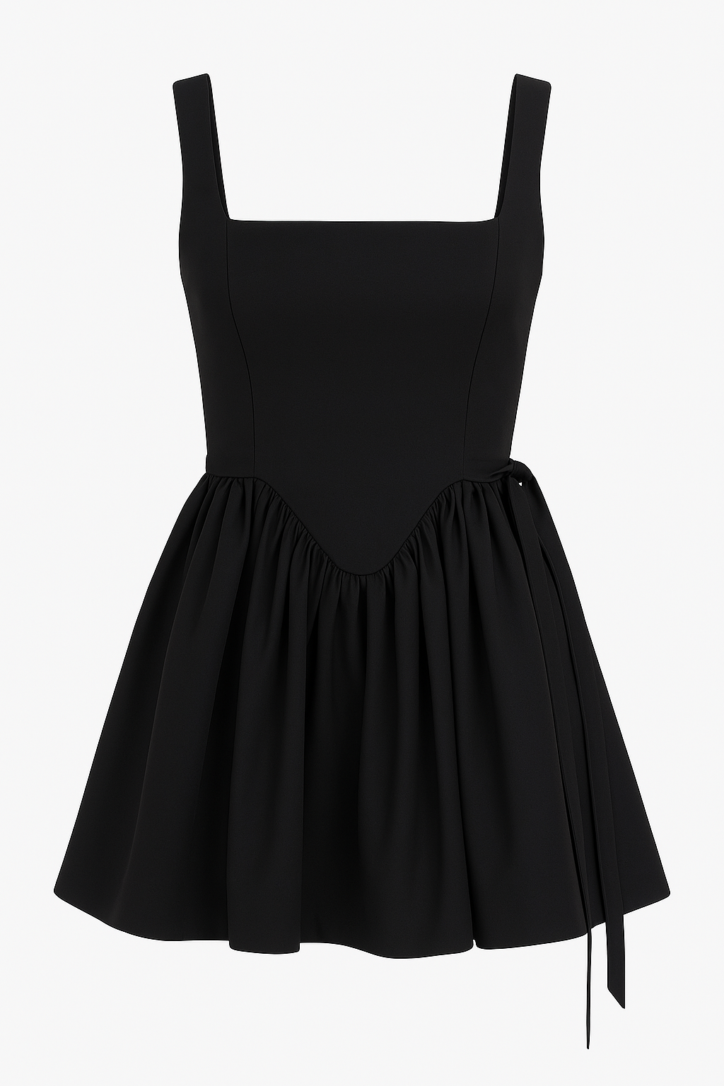 Questo abito corto con scollo dritto e spalline sottili unisce semplicità e raffinatezza per un look irresistibile.