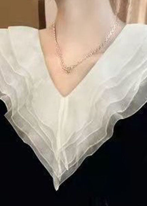 • Colletto Scenografico: Balze in organza bianca a V per un look romantico e ricercato.
