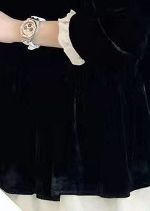 Questo mini dress in velluto con colletto a balze è il perfetto equilibrio tra classe e modernità.