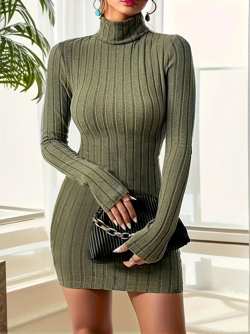 Mini Abito Invernale Donna | Maglia a Coste | Collo Alto e Vestibilità Aderente