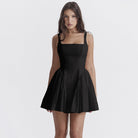 Questo mini abito a bretelle con scollo quadrato è la sintesi perfetta tra femminilità e freschezza.