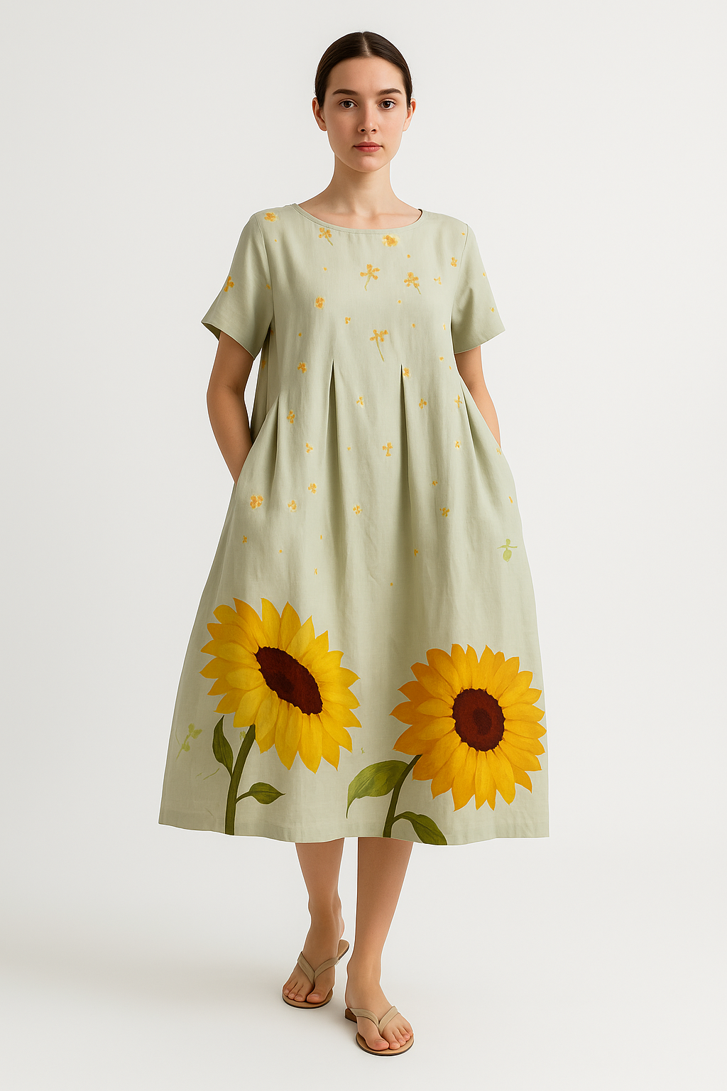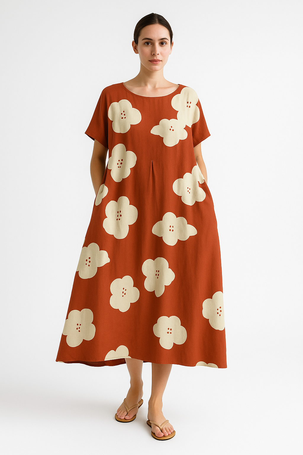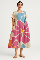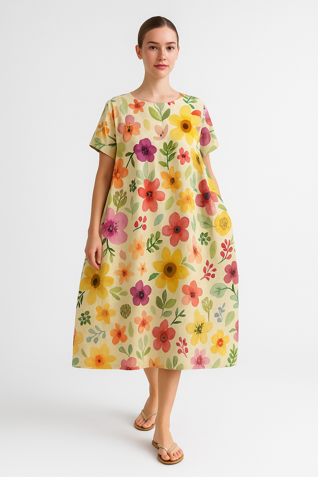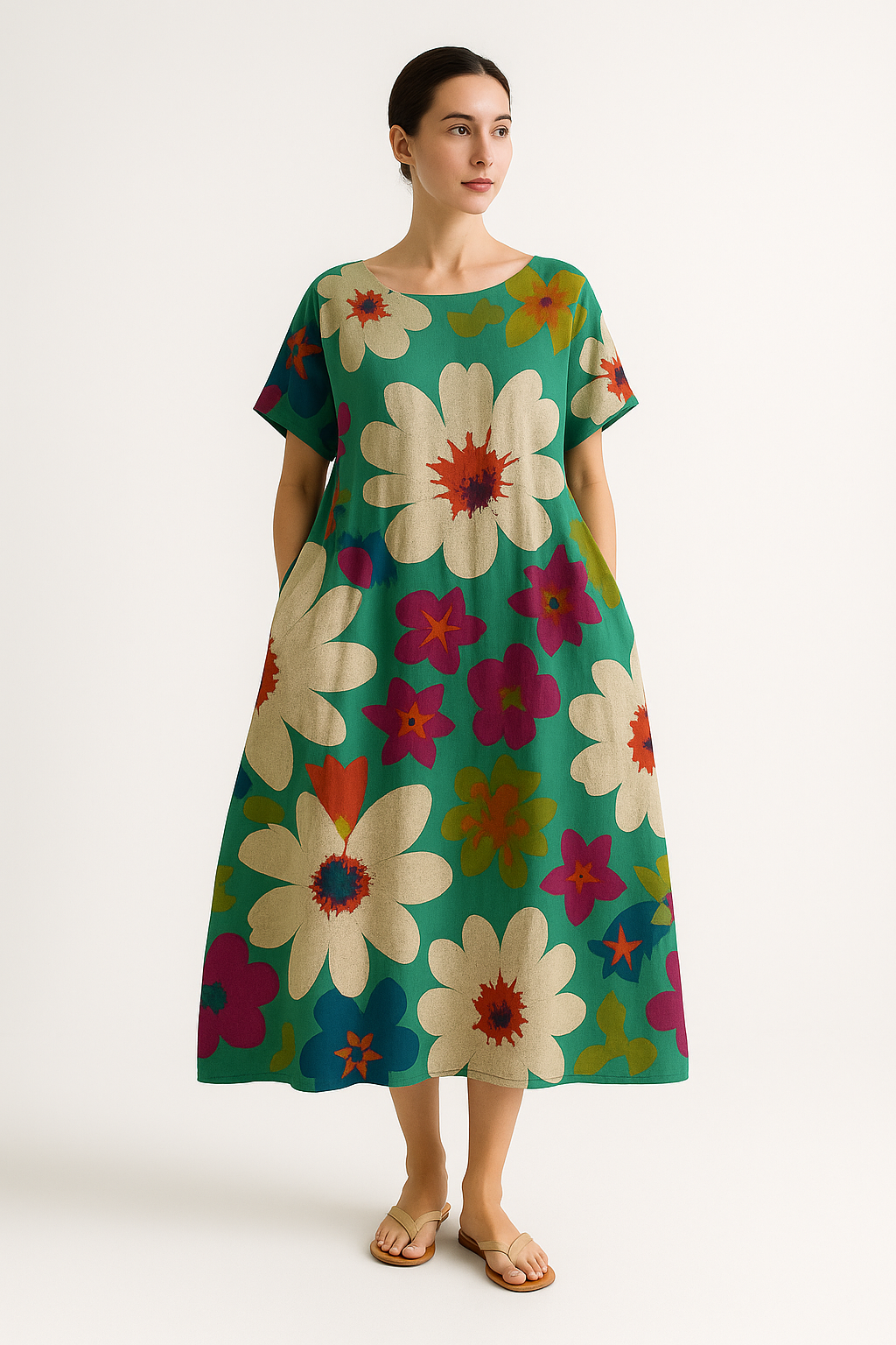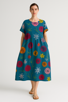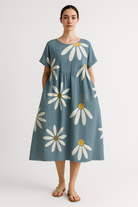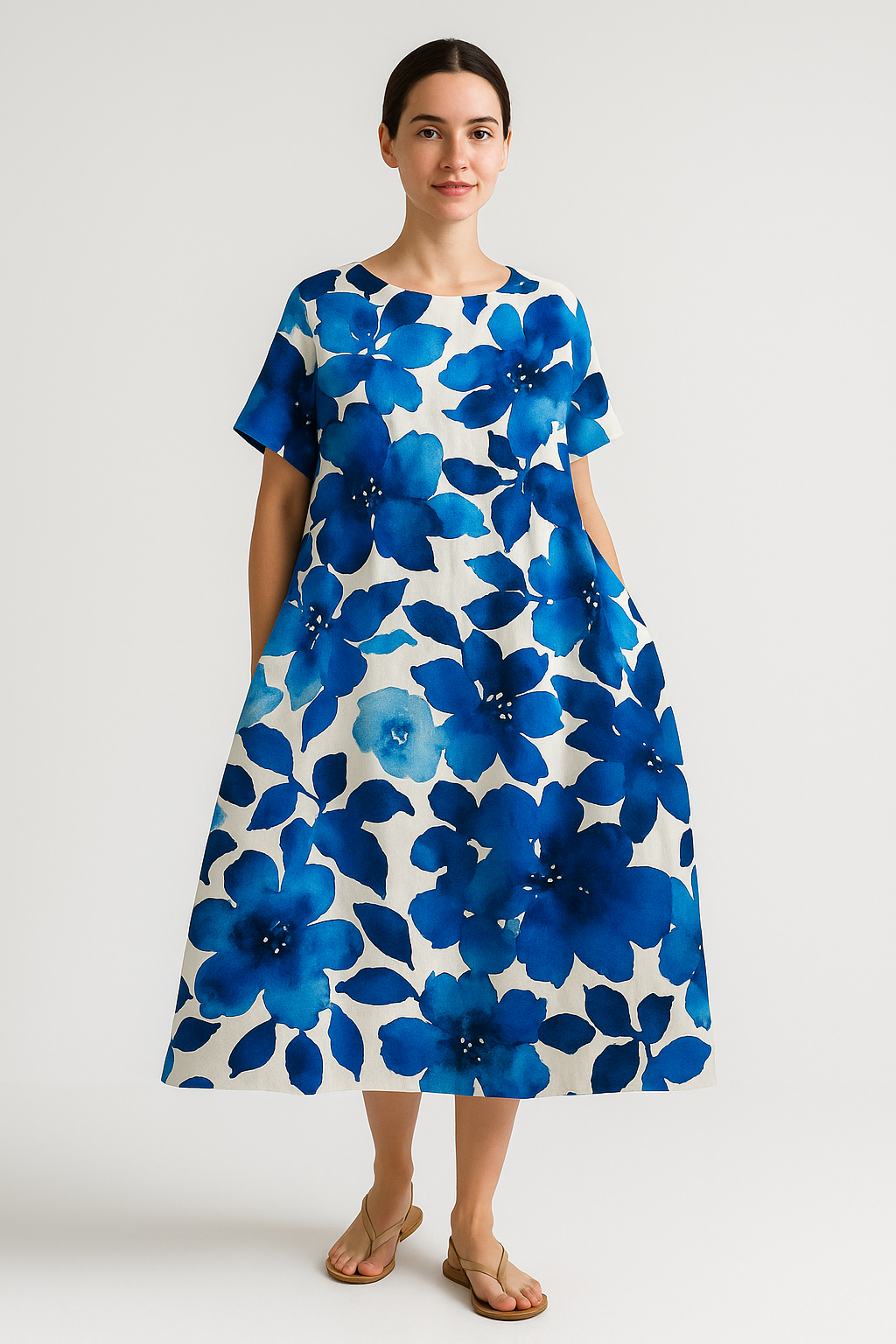Robe Bohème Longue | Coton | Imprimé Floral Bleu