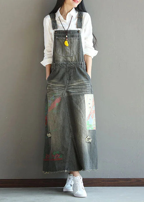 Questa salopette lunga in denim dal taglio ampio è perfetta per chi ama uno stile urbano, creativo e rilassato.
