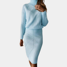 - Design Raffinato: Maglione con collo alto e gonna a matita per un tocco sofisticato.