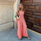 Questa tuta a quadri con corpetto elasticizzato e gamba larga è perfetta per un outfit comodo e stiloso.