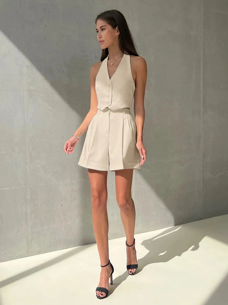 Tuta Short Elegante con Gilet | Stile Sofisticato e Minimal | Perfetta per Look Estivi Chic