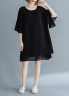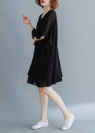 Questo vestito nero corto con maniche ampie è la perfetta combinazione di leggerezza, femminilità e praticità.