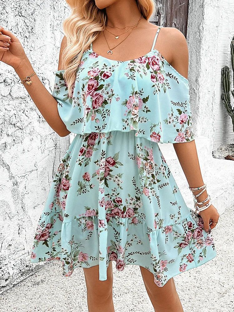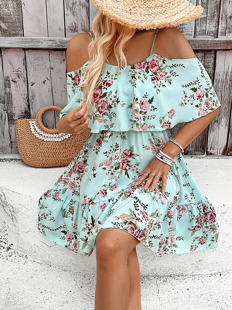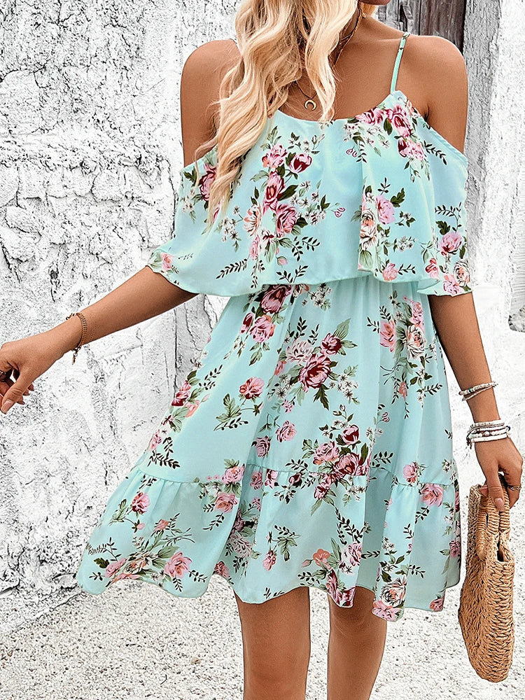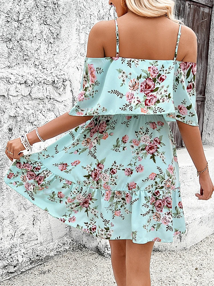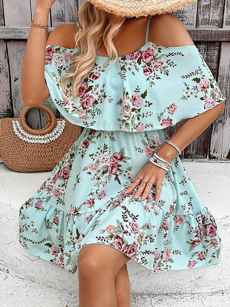 Vestito Estivo Off-Shoulder | Poliestere | Stampa Floreale e Volant