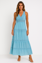 Il vestito lungo Noa è il mix perfetto tra romanticismo e freschezza, con pizzo delicato, tessuto semi-trasparente e balze leggere.