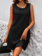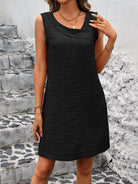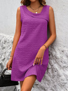 Questo vestito smanicato con tessuto strutturato è l’ideale per un look semplice ma di impatto.