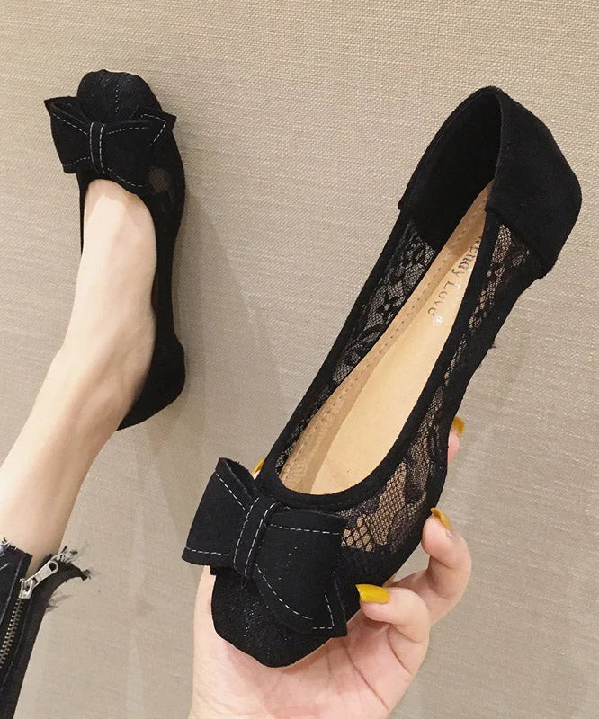 Queste ballerine in pizzo con fiocco combinano raffinatezza e praticità, ideali per completare look sia casual che eleganti.