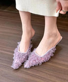 Queste mules a punta in tulle arricciato uniscono femminilità e creatività per un look unico e sofisticato.